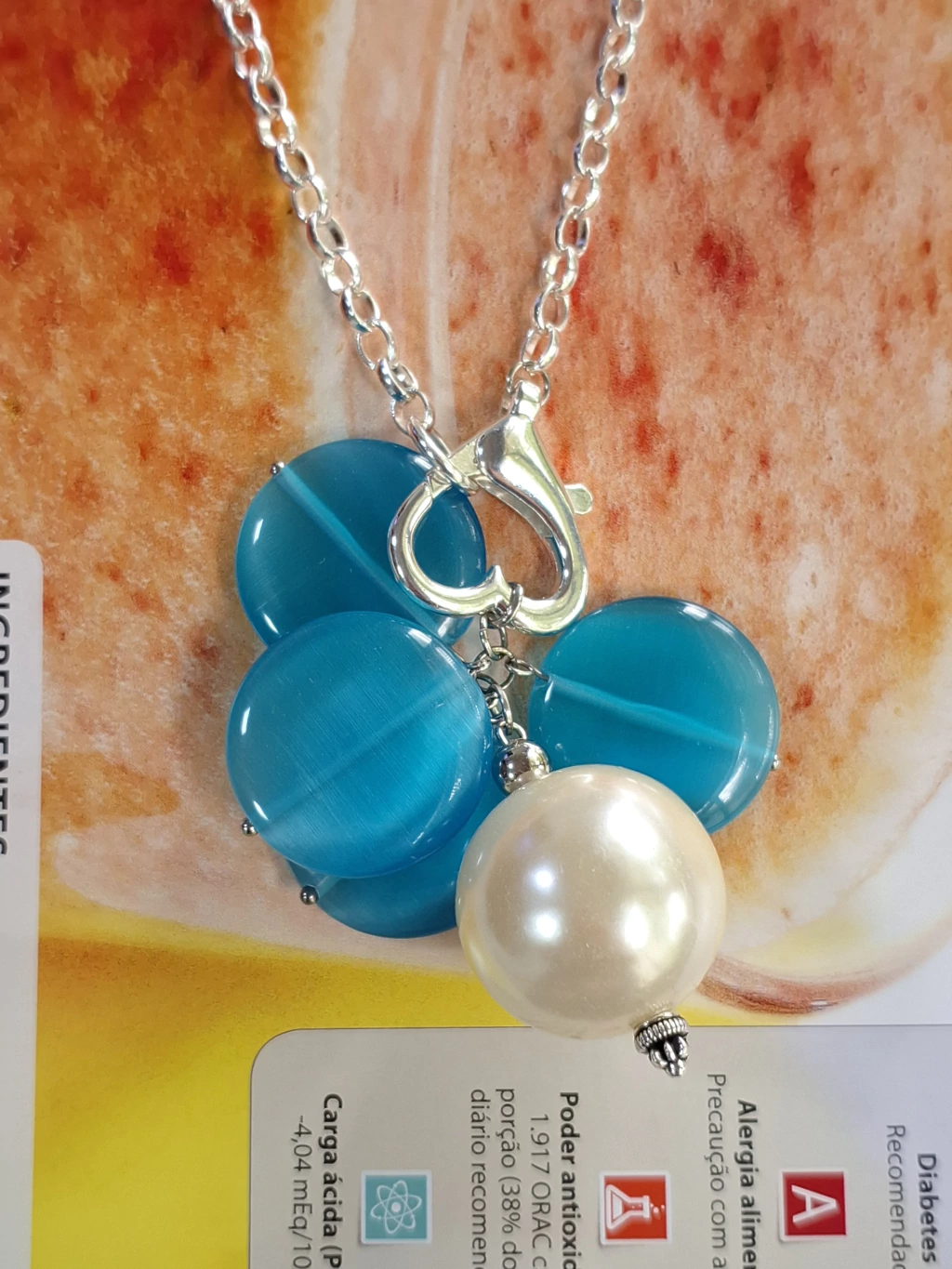 O colar é enriquecido com contas hipnotizantes de olho de gato azul e uma imponente pérola ABS. É o ponto de luz perfeito para qualquer look refinado.