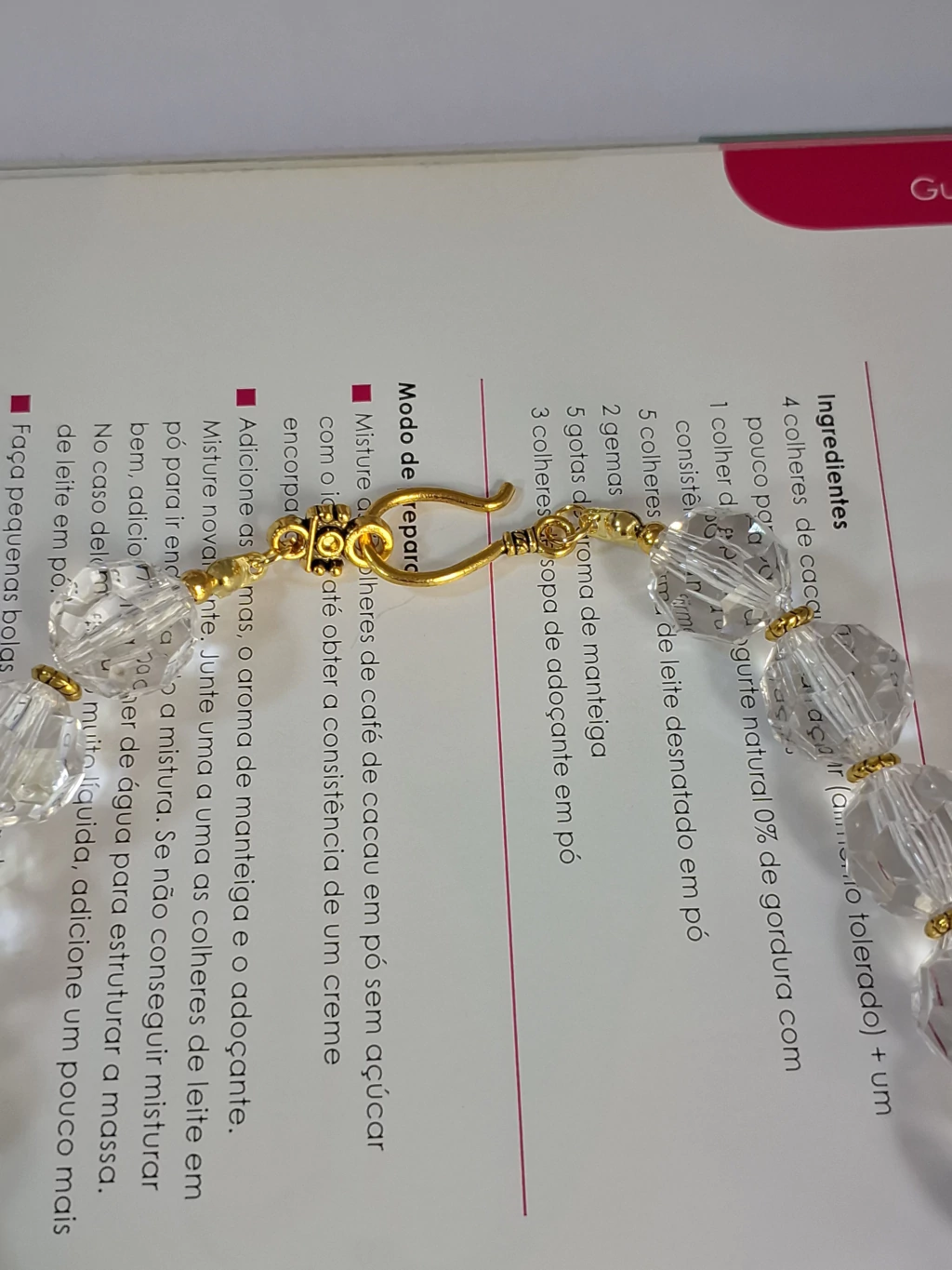 O destaque central é o cubo acrílico transparente, uma peça geométrica que irradia modernidade. As contas de acrílico transparente criam um visual leve e cheio de textura, elegantemente lateralizadas por entremeios dourados que adicionam um toque de luxo e personalidade.
