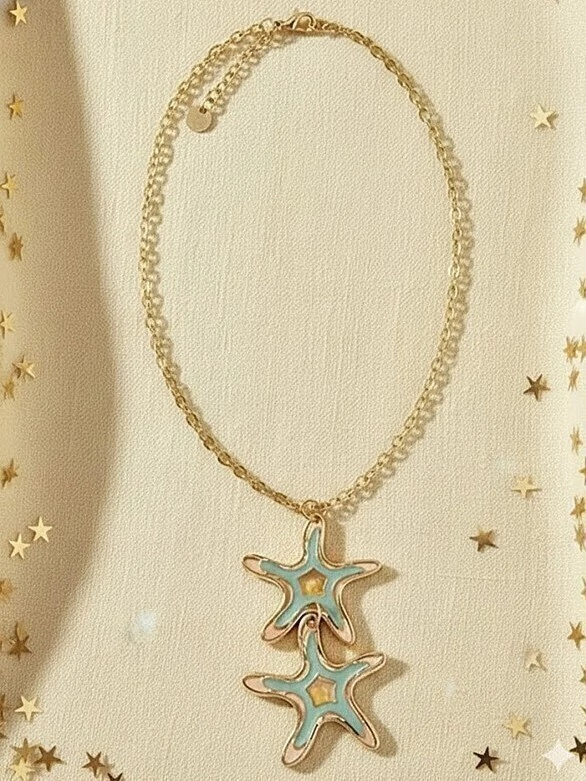 🌟 Colar Estrelas Douradas e Toque Verde Água - Artesanal e Radiante